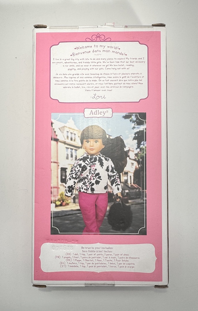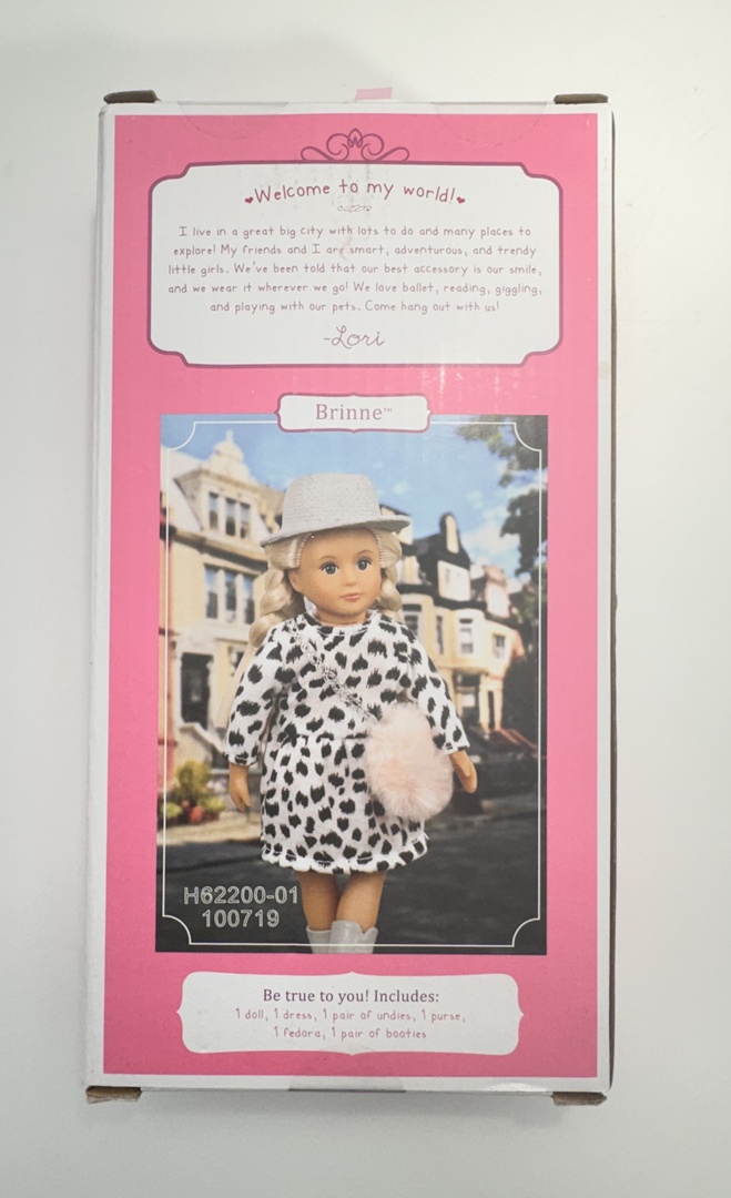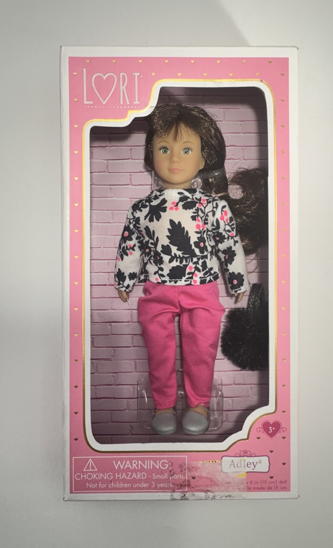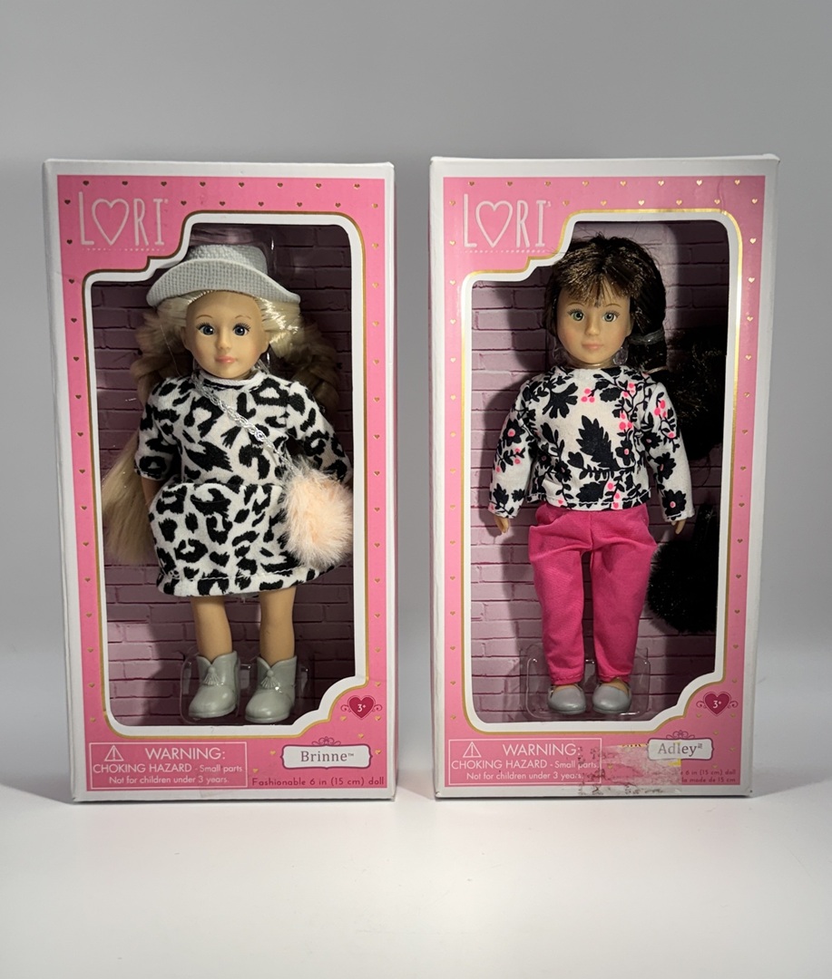 Discover this charming lot of two Lori Fashionable 6″ dolls, featuring Brinne and Adley! Both dolls are brand new and still in their original boxes, complete with all accessories. Brinne comes with a stylish dress, undies, a purse, a fedora, and booties, while Adley is outfitted in a top, pants, a purse, and shoes. These dolls are perfect for imaginative play, collecting, or gifting.