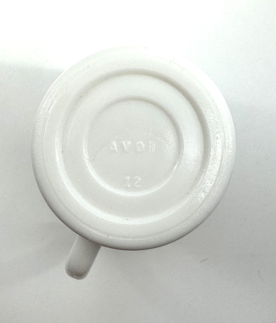 This particular example is in mint condition—no cracks, chips, or visible wear. The rounded body measures roughly 3.5 inches tall and holds about 6 ounces of your favorite tea or coffee, making it both functional and collectible. A discreet “AVON” logo is embossed near the base, adding authenticity and a subtle touch of brand heritage. Whether you’re a seasoned collector of vintage glassware or simply love quirky décor, this mug will delight anyone who appreciates mid‑century design and playful character art.