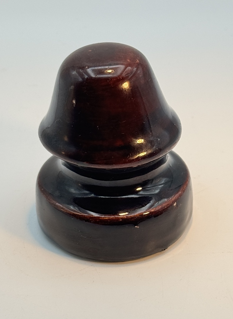 Perfect for display as a conversation piece, this insulator would also make a great addition to an industrial decor collection or a thoughtful gift for someone with a passion for vintage items. Its sturdy porcelain construction and deep brown glaze highlight its durability and timeless appeal.