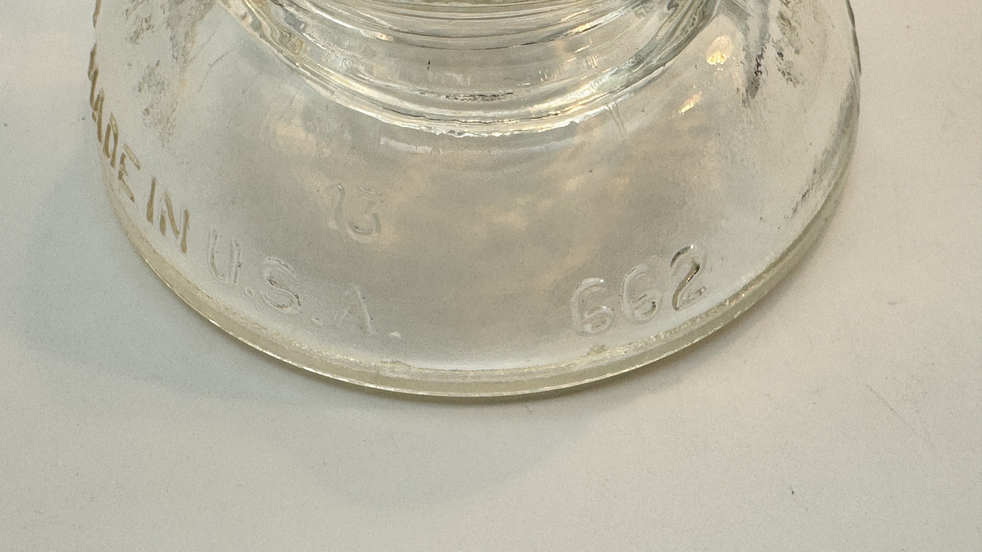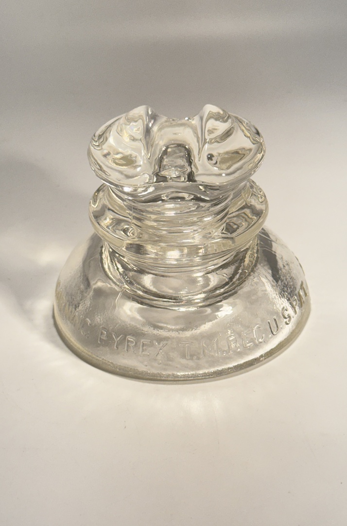 This insulator was manufactured by Corning Pyrex, a renowned American glass company known for its high-quality products. The #662 model is a classic example of mid-century industrial design, originally used in electrical systems. Today, it makes a striking decorative piece or conversation starter for collectors of vintage glassware and historical artifacts.