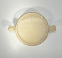 Discover this stunning vintage Fire-King Oven Glass trivet, a timeless piece from the Anchor Hocking brand. Introduced in 1940’s and produced through the 1950s, this creamy-colored trivet is in perfect condition, showcasing its original charm and durability. The trivet features decorative handles and an embossed “Fire-King Oven Glass” mark in the center, adding to its authenticity and appeal.